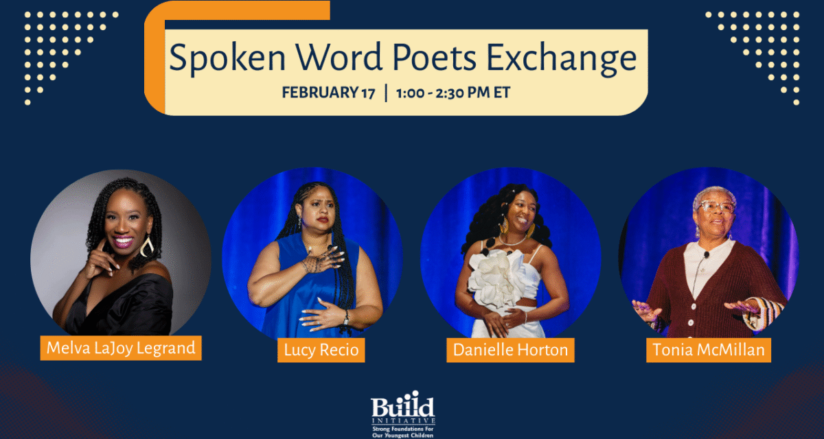 Join the BUILD Initiative for a Spoken Word Poets Exchange with Storyteller and Script Writer Melva LaJoy Legrand and the three Spoken Word Poets who performed at BUILD25—Danielle Horton, Lucy Recio, and Tonia McMillian.